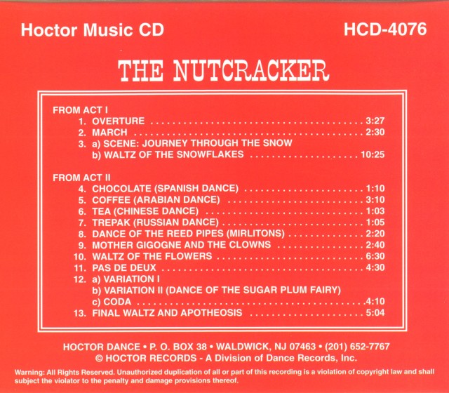 トップページCD 一覧 バレエ曲 CD 全幕バレエ CD The Nutcracker (HCD-4076) 価格: ¥5,280 (税込) [ポイント還元 52ポイント~] 販売期間: 数量: 個 在庫 ○ 返品についての詳細はこちら オーケストラ演奏による、くるみ割り人形の抜粋CD。 代表的な曲目で構成されているため、小さなお子様の鑑賞用にもおすすめです♪ 全13曲 ・中には外装のビニール、パッケージに難や破れなど難のあるものもございますがご了承ください。 こちらもご覧ください♪ デヴィッド・プランプトン David Plumpton | New Classics 1 (CD) ¥4,620(税込) 在庫 × ルイス・カルモナ Luis Carmona | PIANO PARA DANZA Vol.2 (CD) ¥5,500(税込) 在庫  ○ 数量: 個 ルイス・カルモナ Luis Carmona | PIANO PARA DANZA Vol.3 (CD) ¥5,500(税込) 在庫  ○ 数量: 個 ジャンカルロ・カペロ Giancarlo Cappello | Passi sul Pentagramma 1 | GC01C | (CD) ¥5,720(税込) 在庫  △ 数量: 個 ニーナ・ピンザローネ Nina Pinzarrone | Dancing Notes Presents | PN01C | (CD) ¥5,720(税込) 在庫  ○ 数量: 個 ナイジェル・ゲイナー Nigel Gaynor | Classical Pas de Deux Vol.1 | NG07C | (CD) ¥5,720(税込) 在庫  ○ 数量: 個 ナイジェル・ゲイナー Nigel Gaynor | Classical Pas de Deux Vol.2 | NG08C | (CD) ¥5,720(税込) 在庫  △ 数量: 個