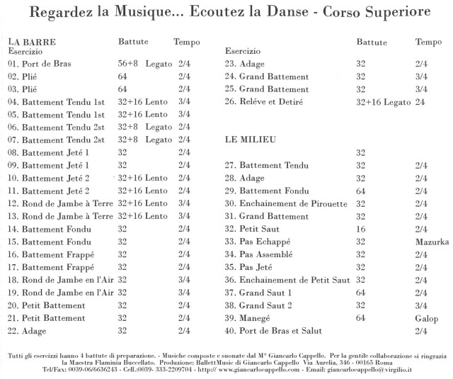 トップページCD 一覧 レッスン曲 CD その他輸入 G・カペロ ジャンカルロ・カペロ Giancarlo Cappello | Regardez La Musique - Advanced | GC06C | (CD) 価格: ¥5,720 (税込) [ポイント還元 57ポイント~] 販売期間: 数量: 個 在庫 △ 返品についての詳細はこちら ジャンカルロ・カペロによるピアノレッスンCD。 在庫限りの貴重なレッスンCDです。 こちらのAdvancedは少し音取りが難しいため、上級クラス向けです♪ 全40曲 演奏: ジャンカルロ・カペロ Giancarlo Cappello 主にヨーロッパのダンスカンパニーで活躍するバレエピアニスト。 マエストロの称号を持つ彼の奏でるメロディーは叙情詩調のスタイルが人気。 こちらもご覧ください♪ デヴィッド・プランプトン David Plumpton | New Classics 1 (CD) ¥4,620(税込) 在庫  △ 数量: 個 ルイス・カルモナ Luis Carmona | PIANO PARA DANZA Vol.2 (CD) ¥5,500(税込) 在庫  ○ 数量: 個 ルイス・カルモナ Luis Carmona | PIANO PARA DANZA Vol.3 (CD) ¥5,500(税込) 在庫  ○ 数量: 個 ジャンカルロ・カペロ Giancarlo Cappello | Passi sul Pentagramma 1 | GC01C | (CD) ¥5,720(税込) 在庫  △ 数量: 個 ニーナ・ピンザローネ Nina Pinzarrone | Dancing Notes Presents | PN01C | (CD) ¥5,720(税込) 在庫  ○ 数量: 個 ナイジェル・ゲイナー Nigel Gaynor | Classical Pas de Deux Vol.1 | NG07C | (CD) ¥5,720(税込) 在庫  ○ 数量: 個 ナイジェル・ゲイナー Nigel Gaynor | Classical Pas de Deux Vol.2 | NG08C | (CD) ¥5,720(税込) 在庫  △ 数量: 個