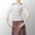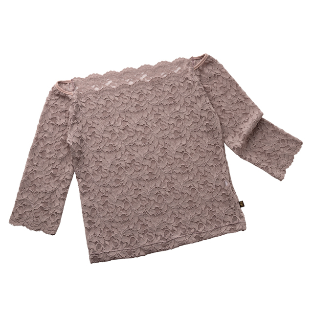 レース生地が新調されたリーフ柄の上品なトップスは、腕が綺麗に見える5分袖丈です。