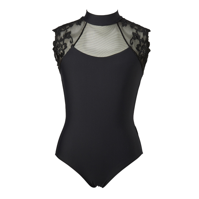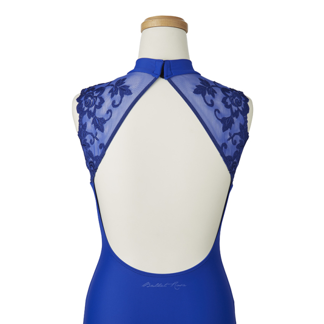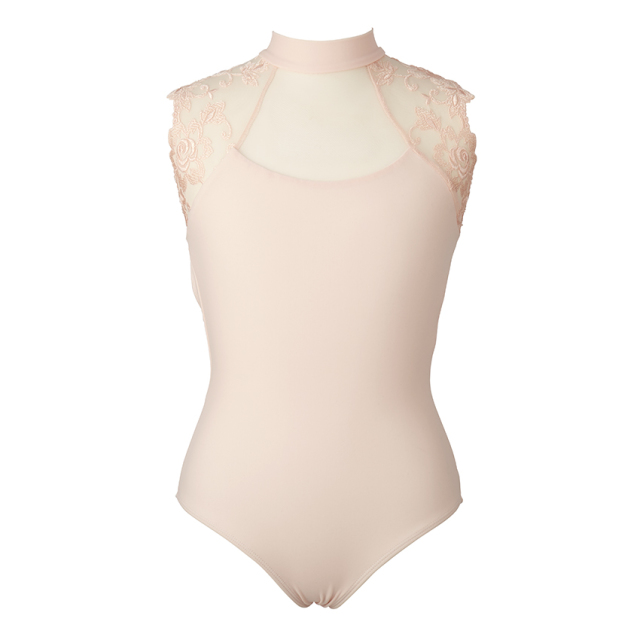 美しい刺繍レースとストレッチチュールを使ったハイネックレオタード。