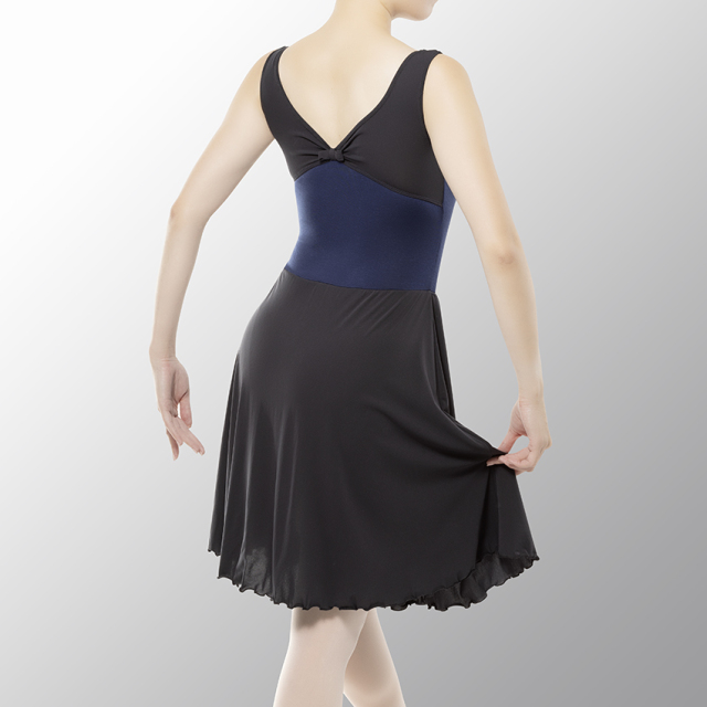 胸元とスカートにはレオタード部分と異なる生地が使用されている、