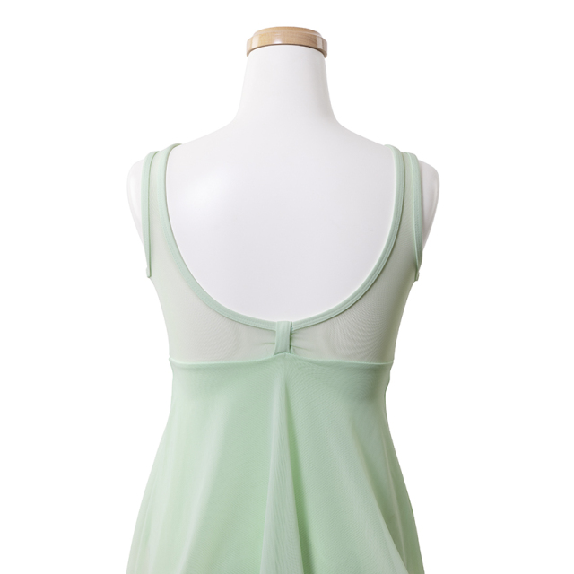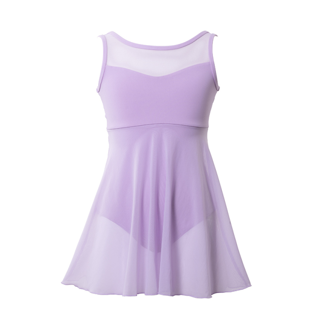 ジョーゼットのようなチュールスカート付きのノースリーブレオタード。