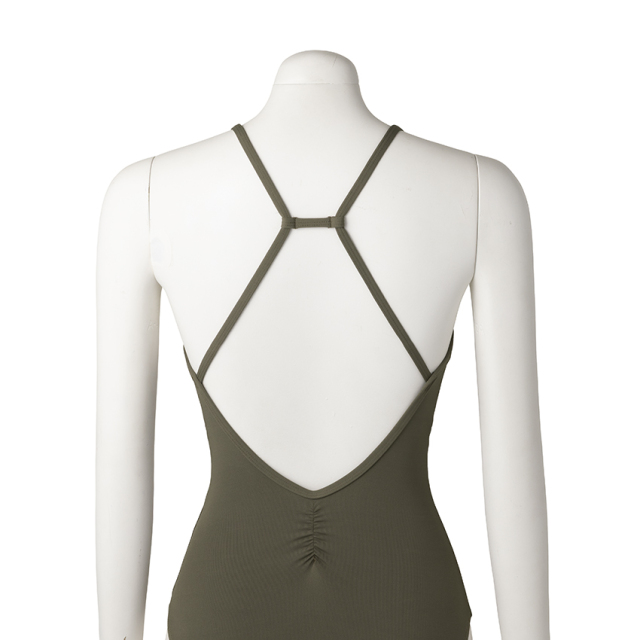 胸元のギャザーがアクセントのキャミソールレオタード。