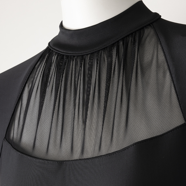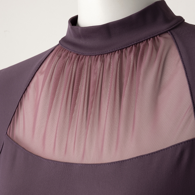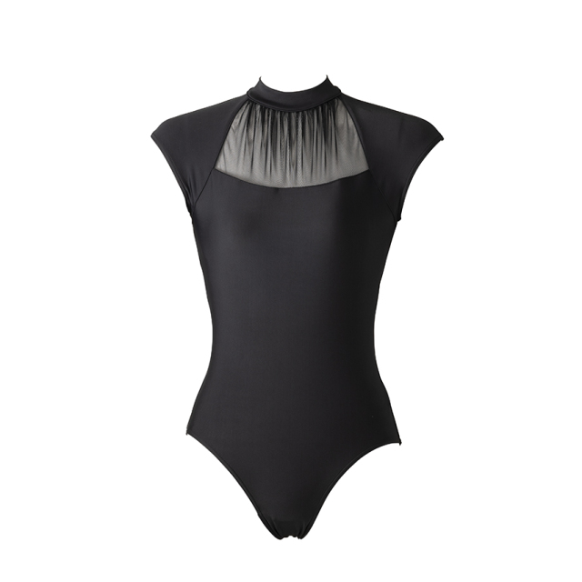 窓のように開いた胸元のデザインが特徴のフレンチスリーブレオタード。